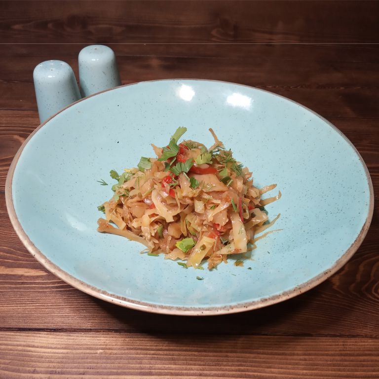Капуста тушеная со сладким перцем и помидорами